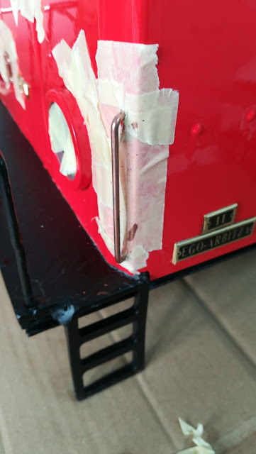 Se han representado los característicos balconcillos de estas máquinas, ya que el acceso a la cabinas se hacía por una única puerta situada en el centro de ambos frontales. Las barandillas de estos balconcillos se hicieron a partir de electrodos a los que se les retiró el material, aprovechando el metal del centro.